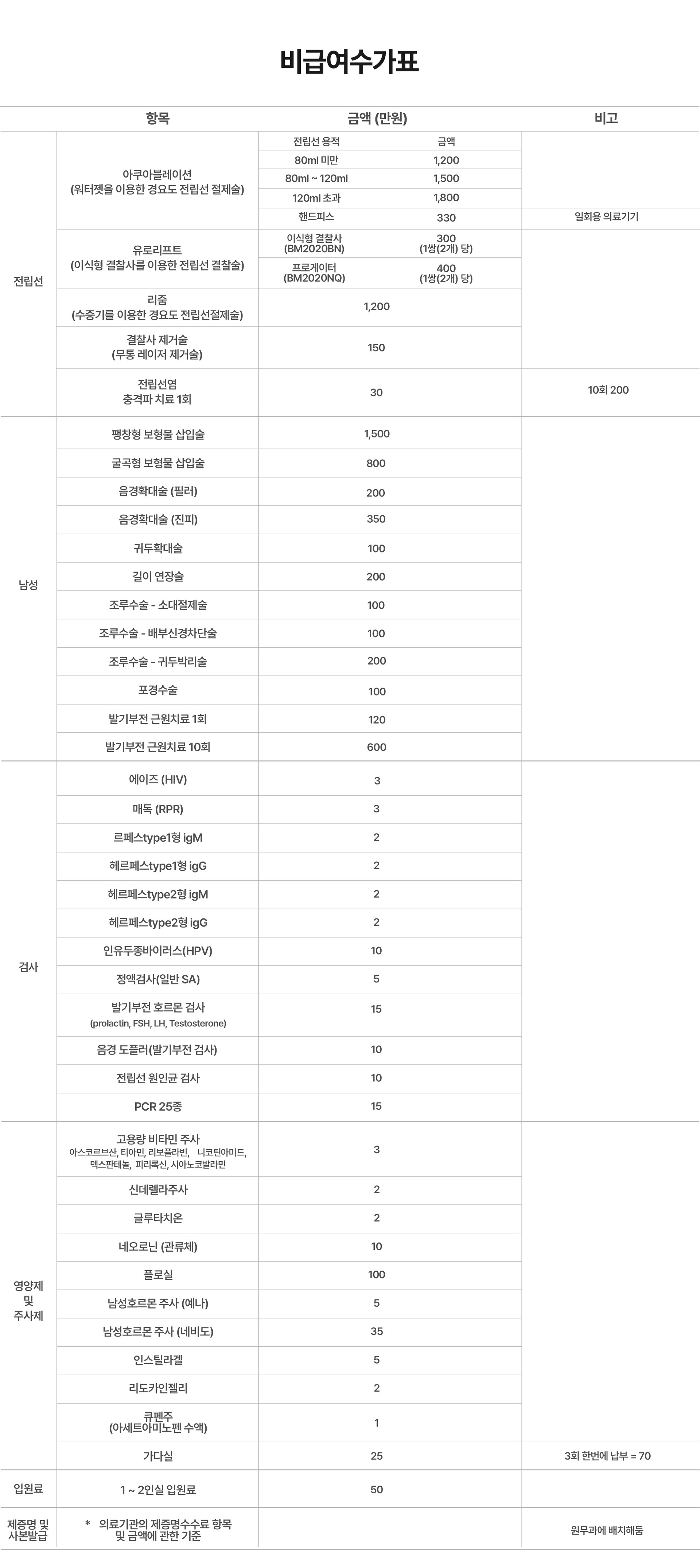 개정의료법 시행에 의한 진료비 공개자료는 아래 비급여수가표 버튼을 클릭하여 다운받으시면 됩니다.